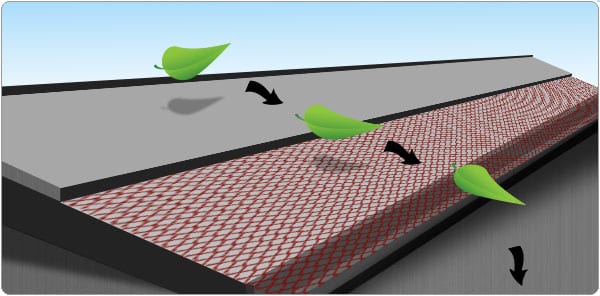 An additional benefit of Leaf Stopper® is that water starts entering the gutter guard at the top of the first tile. This gives water a chance to enter the mesh and make its way to the gutter.